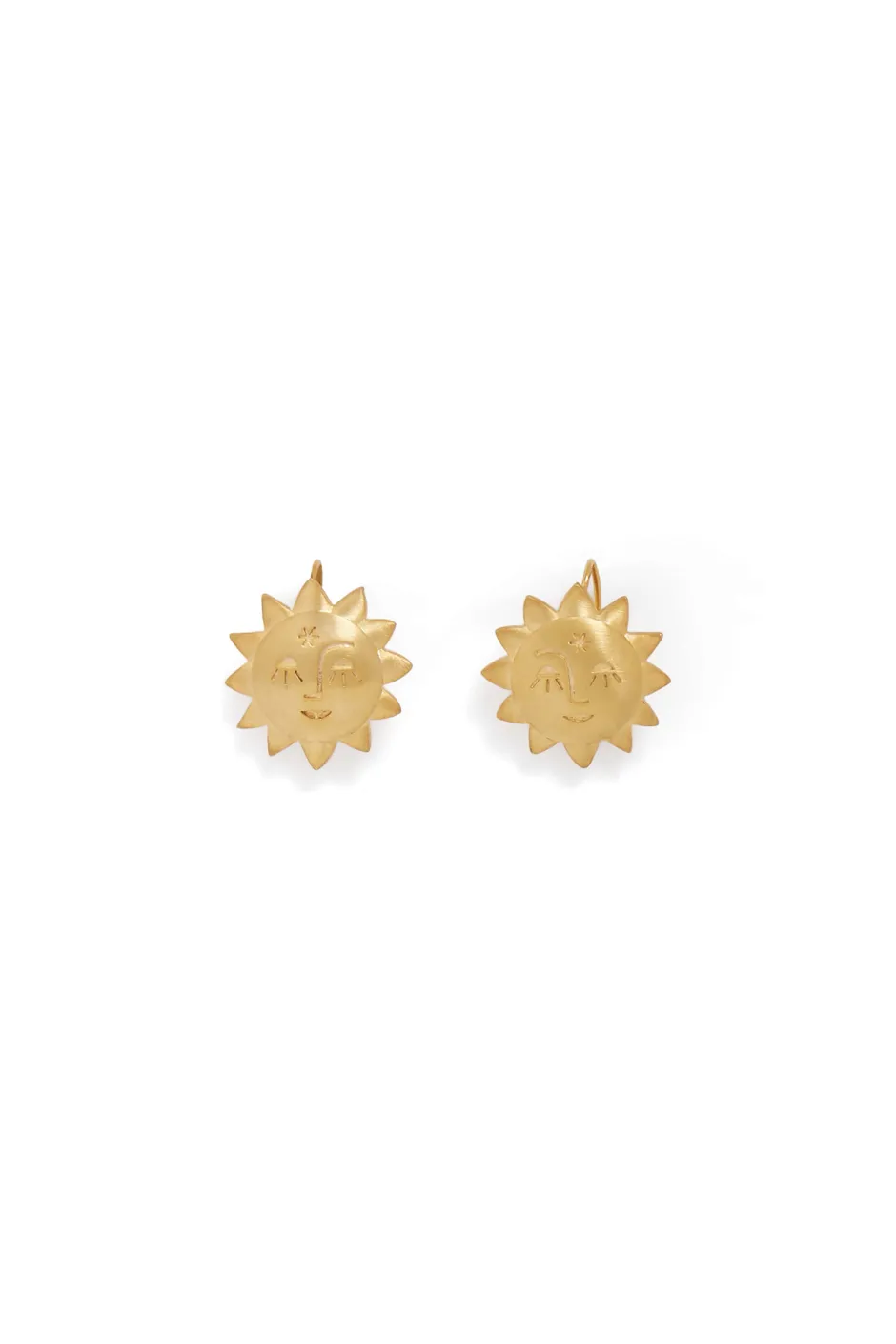 Troquez vos bijoux oversize pour des bijoux discrets et délicats comme ces dormeuses Medarine. En forme de soleil pour suivre la tendance astro, portez ces boucles d’oreilles dorées à l’or fin avec le collier coordonné. • Boucles d’oreilles dormeuses en forme de soleil • Finition brossée • Adaptées aux oreilles percées • Ø : 3 cm • Livrées avec un pochon de rangement • Exclusivité DPH x Feeka