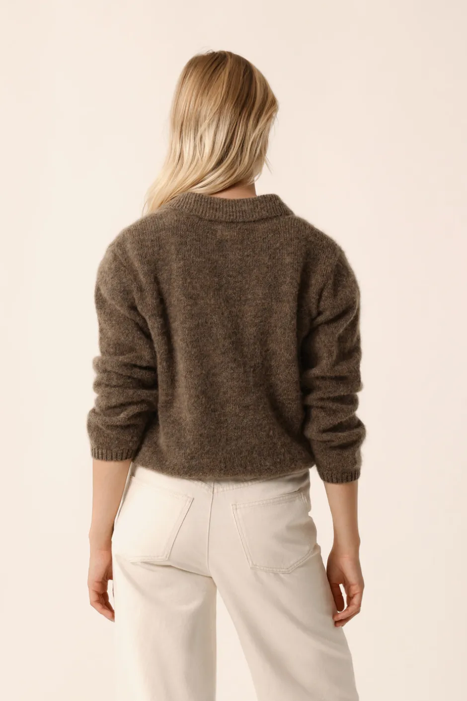 Imaginé comme une petite veste, le gilet Anouk se pare d’un col chemise pour un look rétro contemporain. Porté entièrement boutonné à même la peau ou sur un caraco, ce modèle intemporel s’imposera très vite au moment de choisir votre tenue.• Gilet boutonné manches longues• Col chemise• Finitions en bord-côte• Gilet réalisé dans un fil italien composé d’Alpaga Superfine : Ce fil premium est épais, duveteux, confortable et très chaud au porter.• Coloris Galet : un gris avec des touches de beige• Modèle dessiné à Paris par notre styliste• Fabriqué en Italie• Longueur : 54 cm• Jolien mesure 1m76 et porte une taille 1• Conseil style : portez-le avec le jean large Louela et les Mary Jane Phany