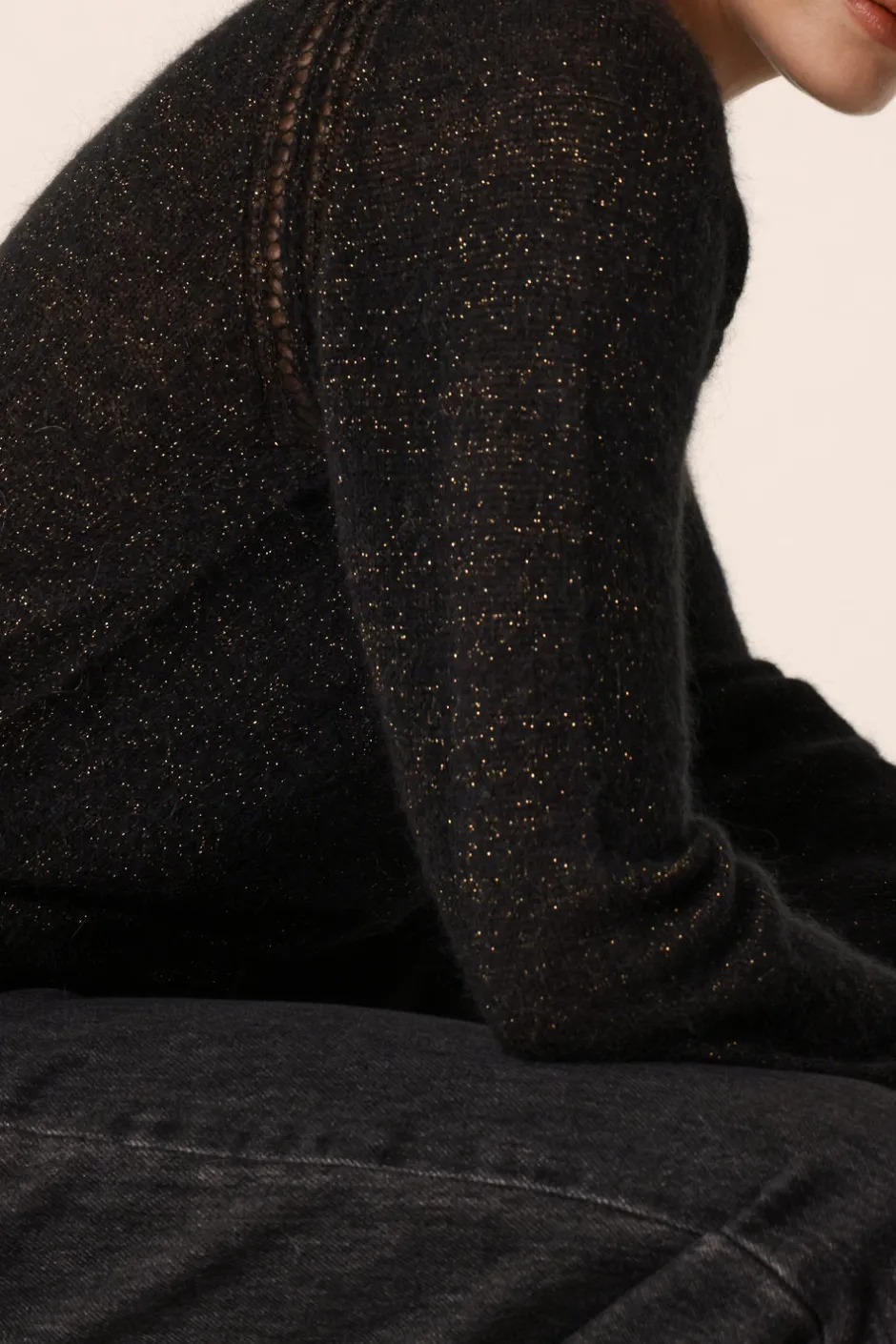 Le gilet col rond Blizar rejoint la liste des indispensables de l’hiver. En kid mohair et soie d’une grande douceur, ce modèle à l’élégante simplicité s’accordera facilement à un jean ou une jupe longue. • Gilet col rond boutonné • Emmanchures raglan à détails ajourés • Finitions en bord-côte • Gilet réalisé en fil du groupe « Silky » composé de Kid Mohair d’Afrique du Sud et de soie de Chine. La beauté de ce fil réside dans sa finesse et son extrême douceur.| Coloris Noir : un noir intemporel • Modèle dessiné à Paris par notre styliste • Longueur : 53,5 cm pour une taille 1 • Jolien mesure 1m76 et porte une taille 1 • Conseil style : portez-le avec le pantalon évasé Loumo et les boots Paloupa pour un look chic décontracté