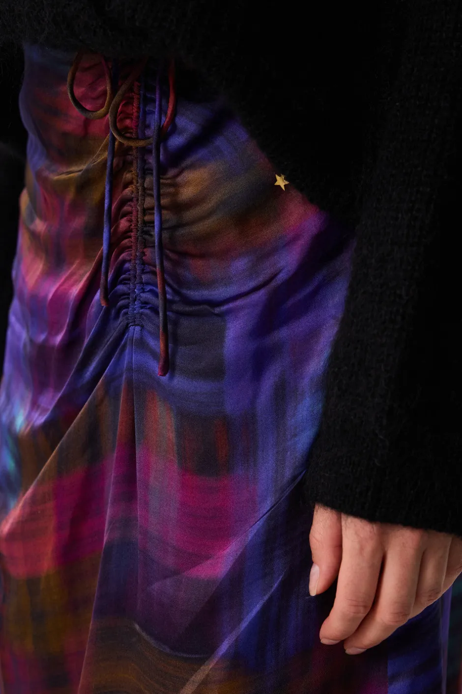 Une ligne classique stylisée d’un détail plissé et d’une longue fente au dos, la jupe longue Evali s’impose dans notre dressing hivernal. Animée d’un imprimé inédit, cette création à porter avec un pull en mohair ou un blazer pour un look plus habillé sera votre meilleure alliée cette saison. • Jupe longue imprimée légèrement évasée en base • Lien de serrage devant à effet plissé • Longue fente au dos • Fermeture zippée • Imprimé exclusif Des Petits Hauts « Anoki » présentant de grands carreaux diffus comme aquarellés aux tonalités automnales • Modèle dessiné à Paris par notre styliste • Longueur : 86,5 cm pour une taille 1 • Kryzia mesure 1m70 et porte une taille 1 • Conseil style : portez-la avec un pull fuchsia et des bottes à talon pour un look city ultra contemporain