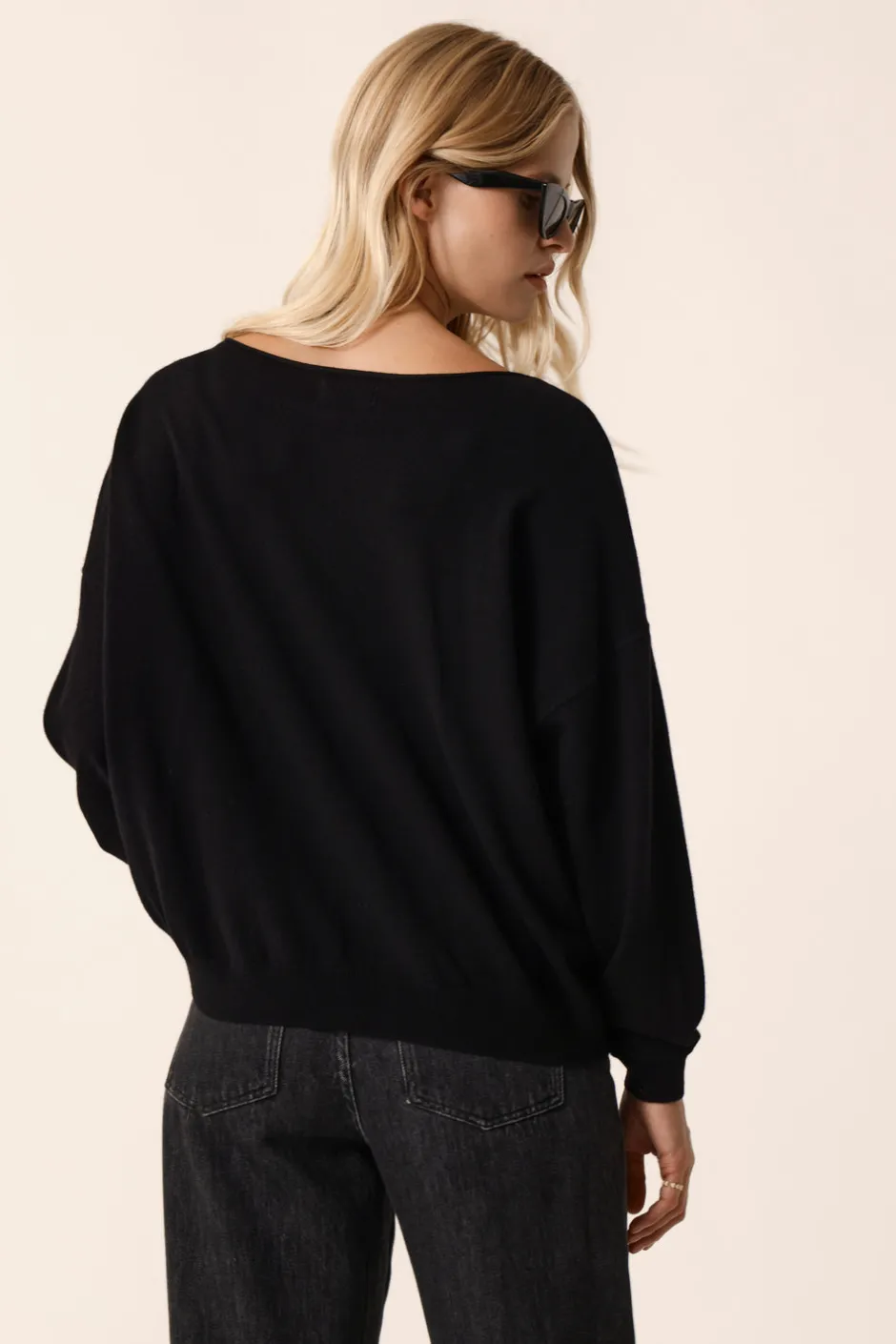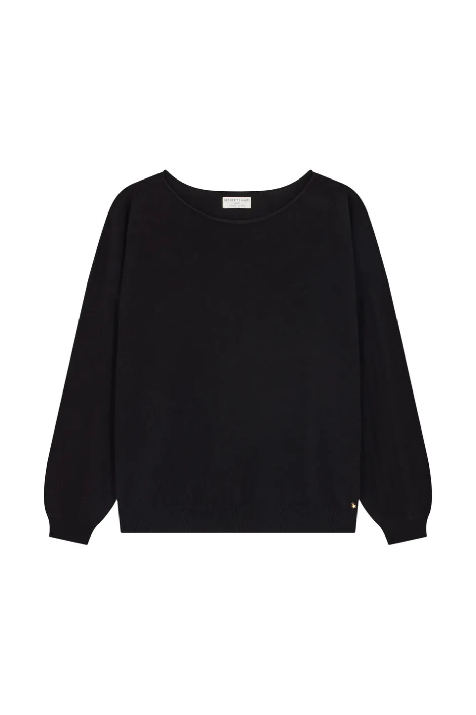 Porté à même la peau ou sur un caraco, la tendance goûte au minimalisme avec le pull Aragone. Coupe décontractée et facile à accorder, c’est le petit pull sur lequel miser. • Pull volume large manches longues • Emmanchures décalées • Encolure bateau roulottée • Bas de manches et base resserrés en bord-côte • Pull fin femme réalisé en fil italien du groupe « Mérinos » en laine Mérinos extrafine. Maille fine toucher cachemire douce et chaude au porté. • Coloris Noir : un noir intemporel • Modèle dessiné à Paris par notre styliste • Longueur : 58,5 cm pour une taille 1 • Jolien mesure 1m76 et porte une taille 1 • Conseil style : portez-le avec une broche Des petits Hauts et le jean large Louela pour un look chill et cosy