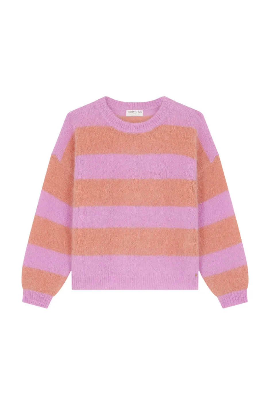 Toujours aussi doux et cosy, le pull oversize Banelle en kid mohair fait un retour remarqué cette saison. Décliné dans de nouveaux coloris pop et vibrants, ses larges rayures et sa coupe lose réveilleront les looks d’hiver. • Pull volume généreux • Emmanchures décalées • Encolure ronde dégagée • Bas de manches et base en bord-côte légèrement resserré • Détails de Lurex col et poignets • Pull réalisé en fil italien du groupe « Moelleux » en Kid Mohair et laine mérinos certifiée sans Mulesing. Fil gonflant, chaud, très doux et duveteux. • Coloris Blossom et Coing : un rose mauve et un rose pêche • Modèle dessiné à Paris par notre styliste • Longueur : 56 cm pour une taille 1 • Iolanta mesure 1m71 et porte une taille 1 • Conseil style : portez-le avec le jean mom Louisette 1 et des baskets pour un look citadin