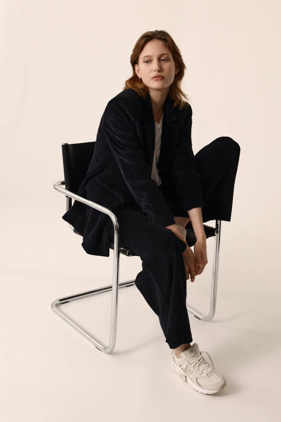 Icône du vestiaire portée de jour comme le soir, la veste de tailleur Sianette s’inspire du blazer croisé masculin pour l’automne. Revue et stylisée dans un velours côtélé très tendance cette saison, épaulettes, double boutonnage et poches à rabat façonnent cette pièce résolument mode. • Veste de tailleur en velours côtelé • Manches longues à épaulettes • Poignets boutonnés • Poches à rabat • Double boutonnage • Coloris Noir : un noir chic et intemporel • Modèle dessiné à Paris par notre styliste • Longueur : 103 cm pour une taille 1 • Josie mesure 1m77 et porte une taille 1 • Conseil style : portez-le en total look avec le pantalon Sialito et les bottines Papilla pour une silhouette rétro
